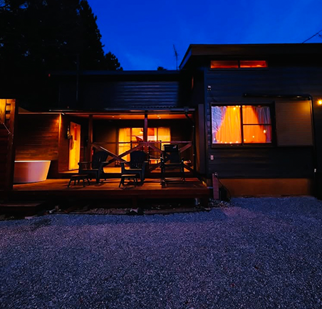| 設備 | バスルーム / 洗浄機付きトイレ / キッチン / サウナ / 水風呂 / シャワー / ウッドデッキ / ファイヤーピット(焚火台) |
